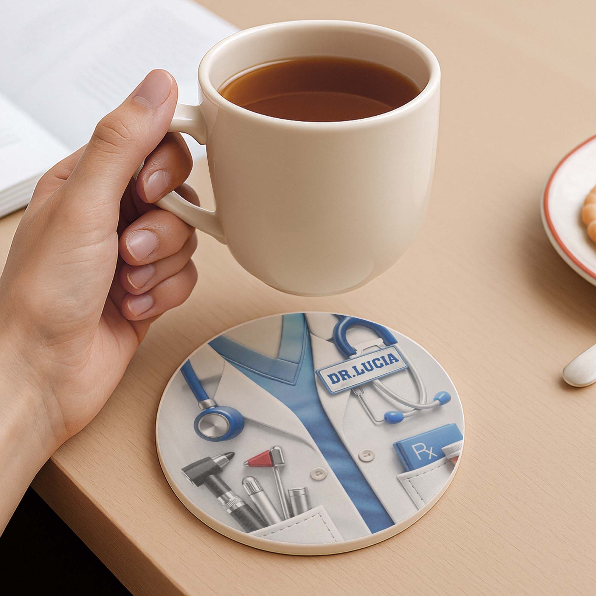 Dr. Rx Medizinischer Labor mantel und Stethoskop Profession elles Design - Personal isierte kunden spezifische Keramik UntersetzerCO