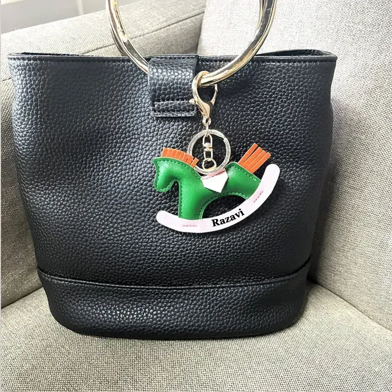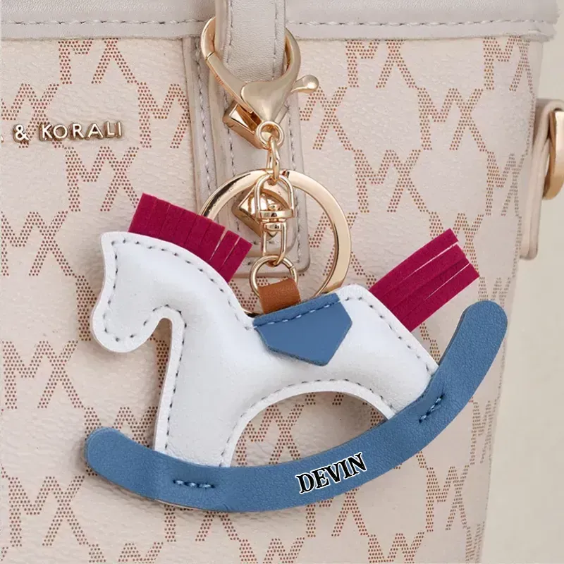 🐎Personal isierte PU-Leder Schaukel pferd Schlüssel anhänger