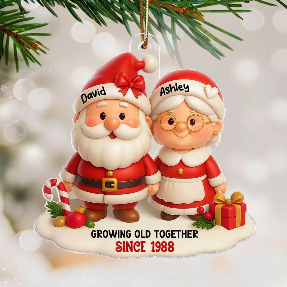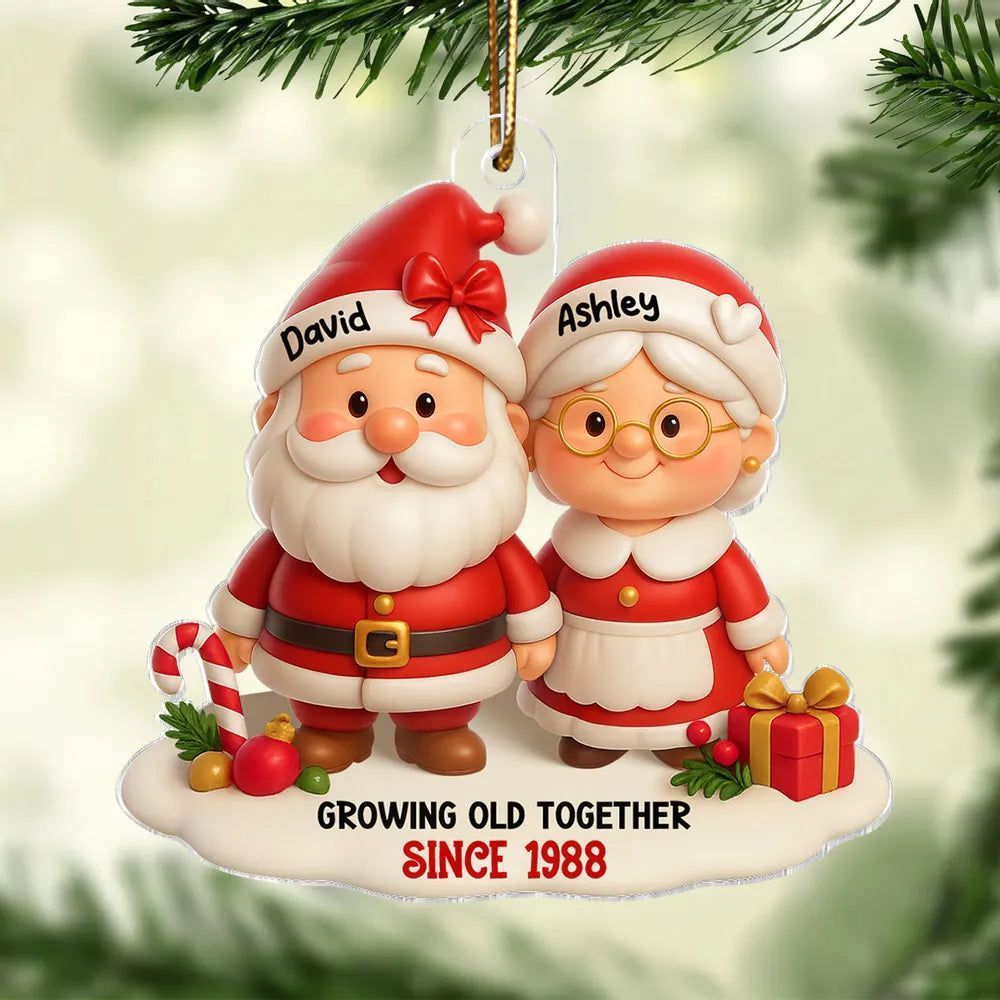 Feiern Sie ein Leben voller Liebe mit diesem bezaubernden Weihnachtsmann-Pärchen-Ornament aus Acryl. Der Spruch „Gemeinsam alt werden“ verwandelt die Weihnachtsbeleuchtung in eine herzliche Hommage an die ewige Kameradschaft.