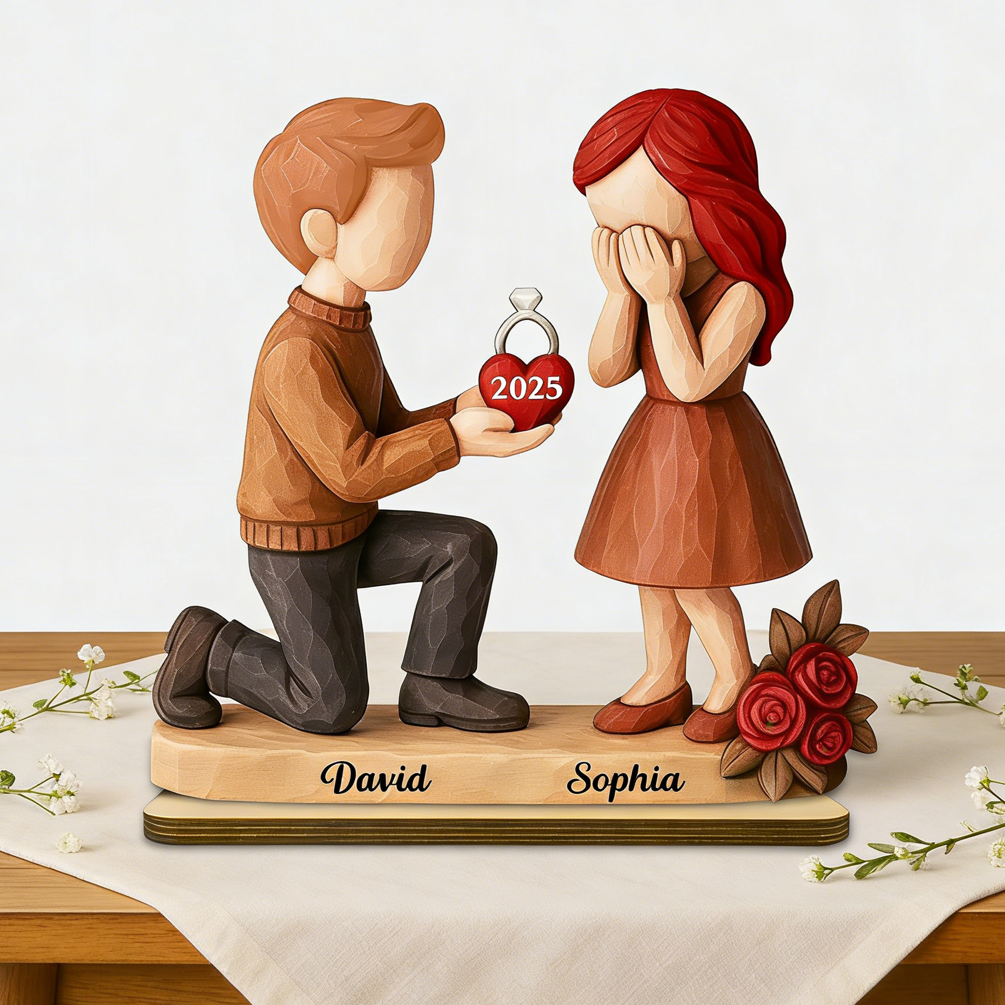 Personal isierte Holzplakette mit Vorschlag Paar Figuren, Custom Year & Names, romantisches Heim dekor, einzigartiges Verlobung geschenk