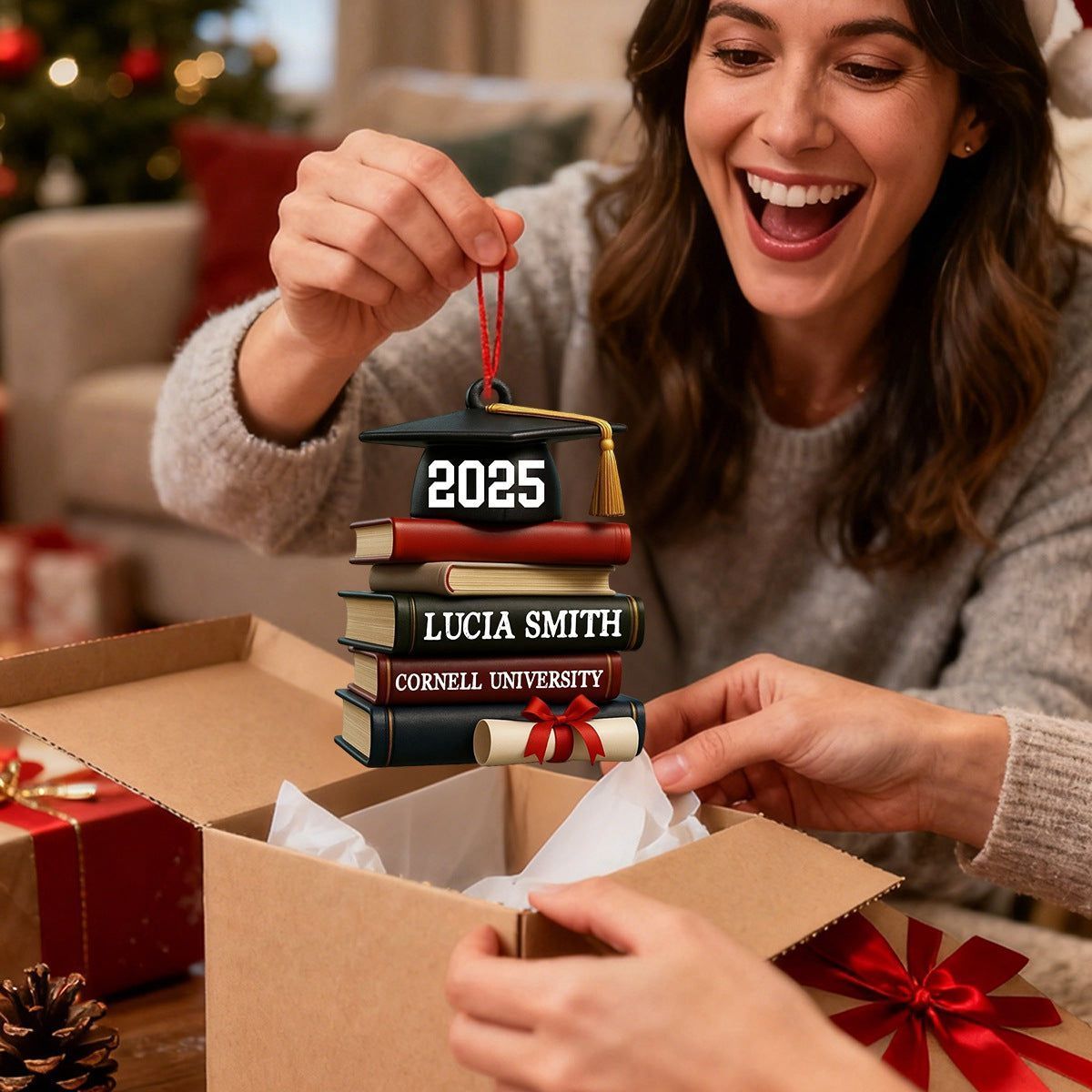 Feiern Sie akademische Spitzenleistungen Bücher und Diplom Personalisiertes Acryl-Ornament