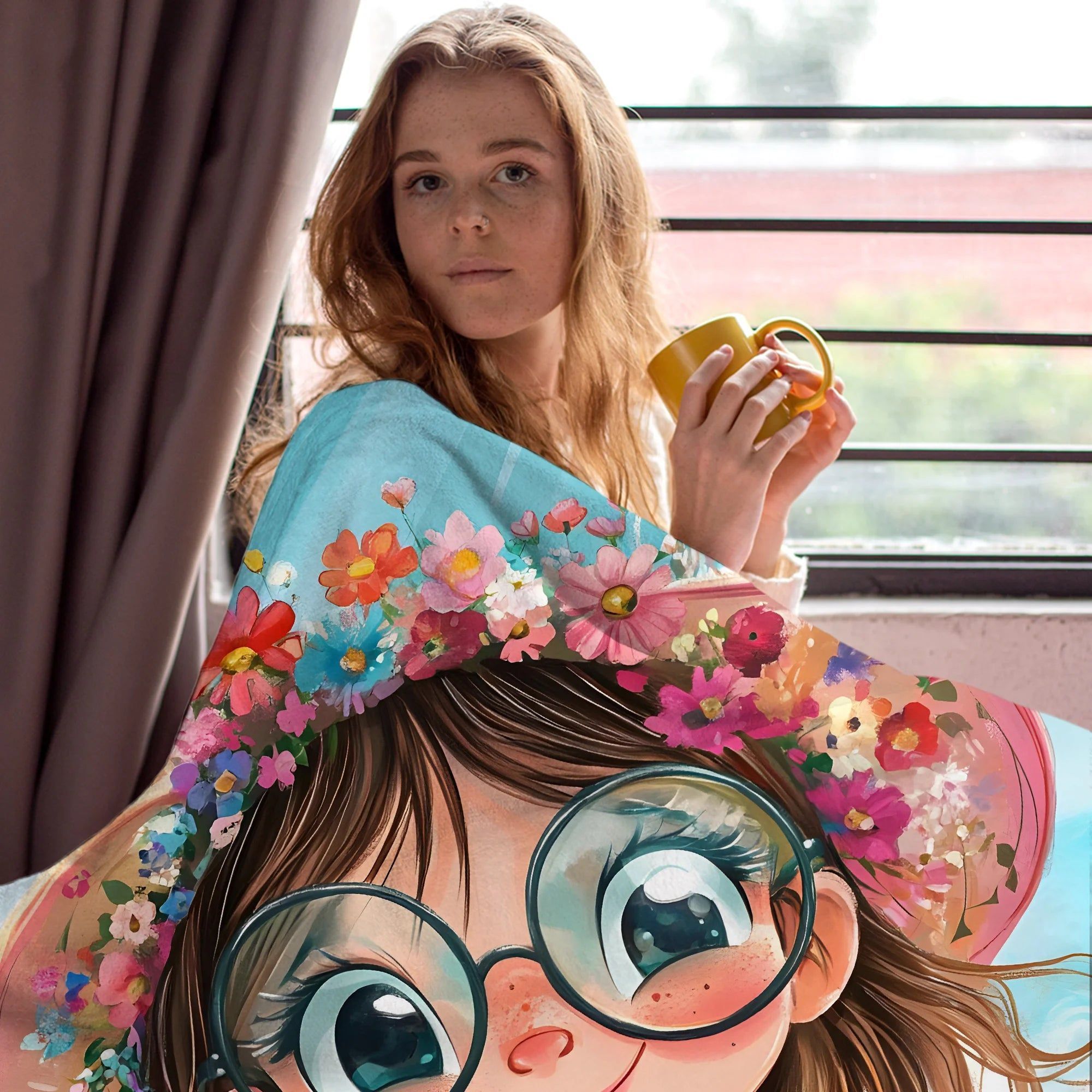 Maßgeschneiderte weiche Decken mit Cartoon-Blumenmädchen-Mustern und Namen können individuell gestaltet werden.