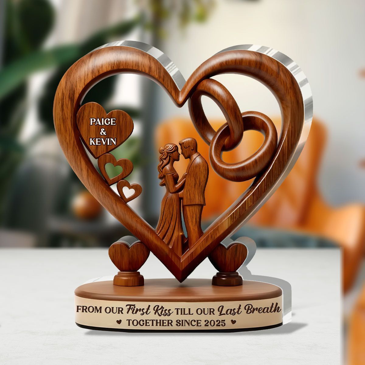 Feiern Sie eine Liebe, die ein Leben lang anhält. Diese personal isierte Acryl-Plakette fängt Ihre Reise ein-von Ihrem ersten Kuss bis zu jedem Moment, der noch kommt. Benutzer definierte Namen und Datum machen es zu einem einzigartigen Andenken für Paare.