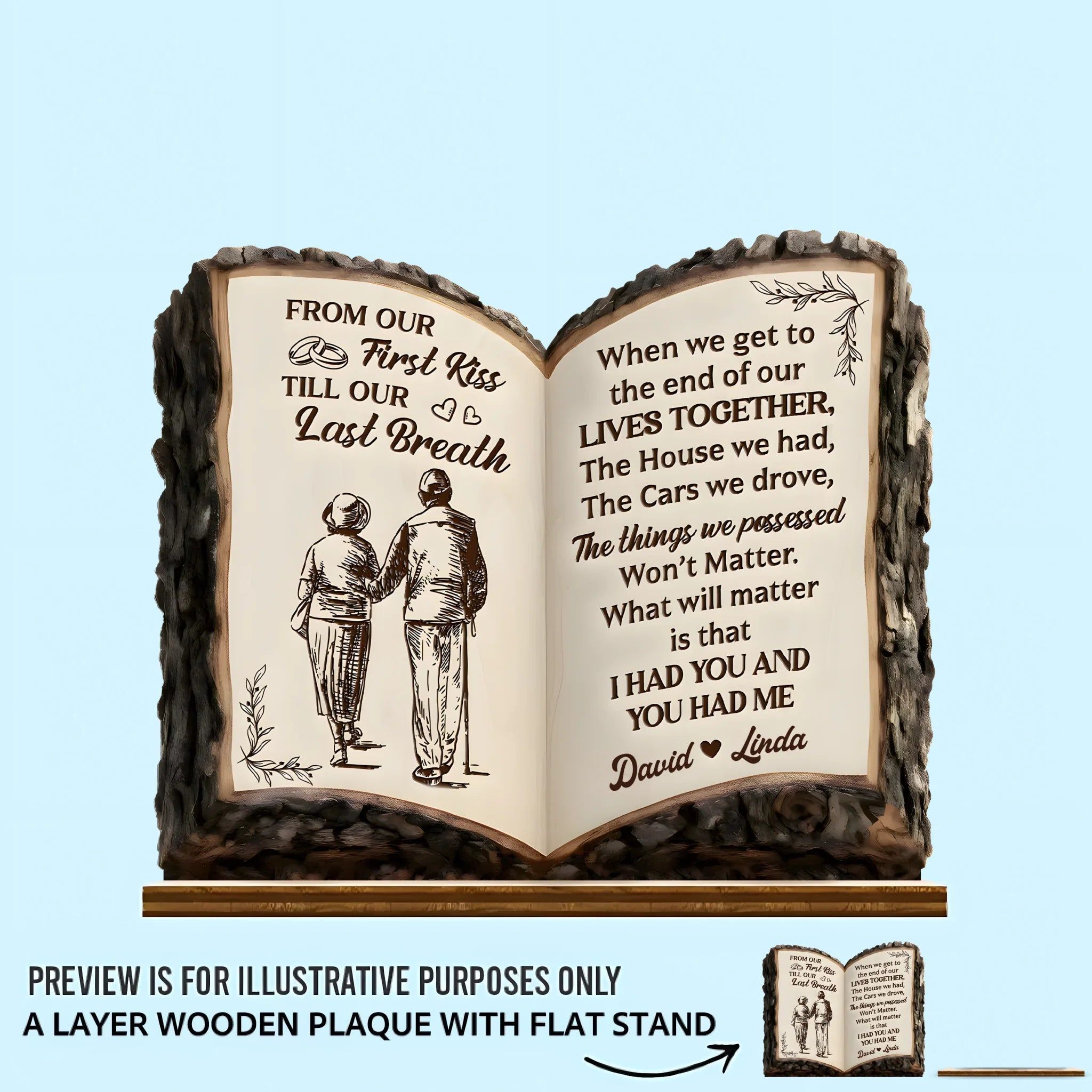 Von unserem ersten Kuss bis zu unserem letzten Atemzug – Personalisierte Namensplakette aus Holz – Geschenk für Paare