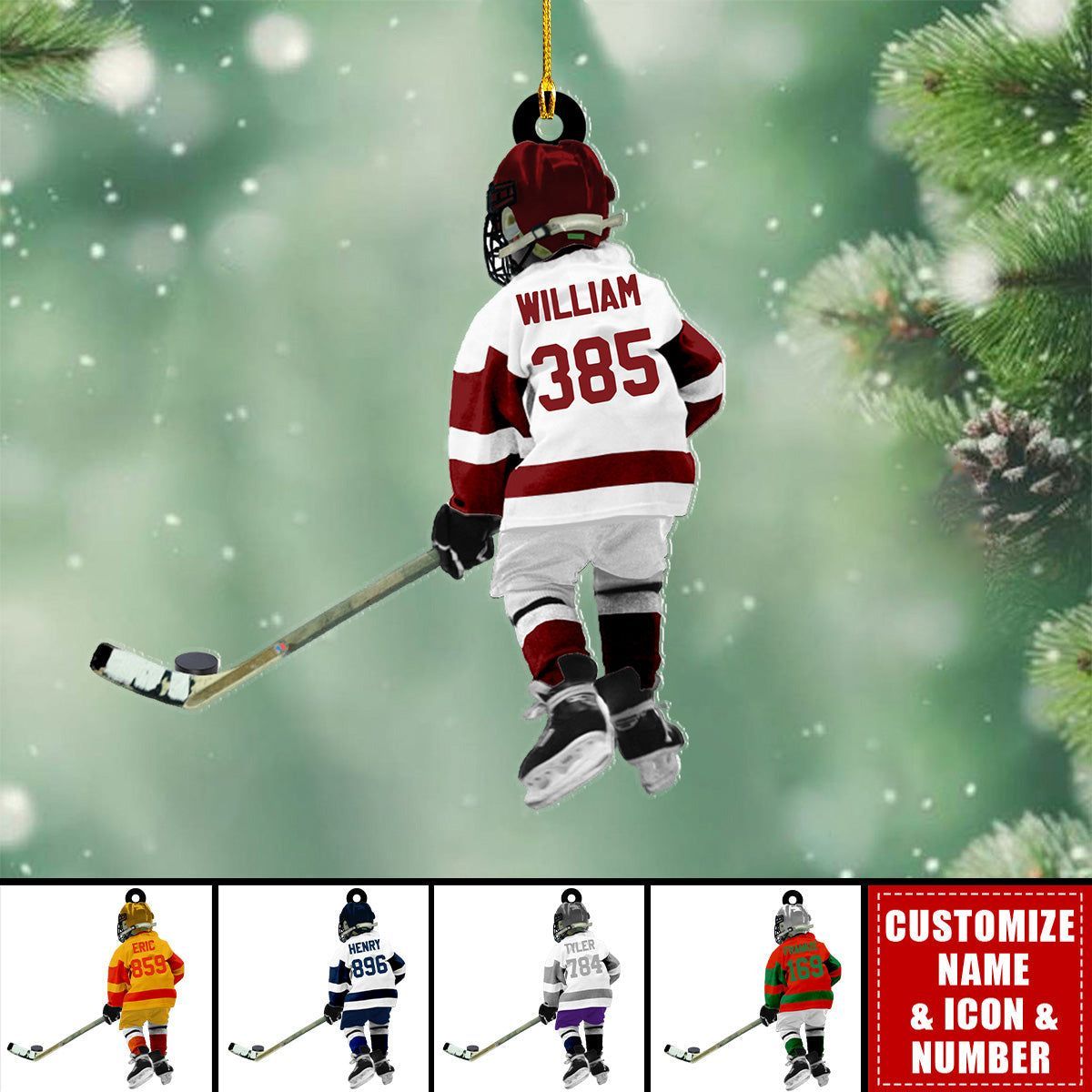 Personalisierter Weihnachtsschmuck aus Acryl für kleine Hockeyspieler – Geschenk für Hockeyfans