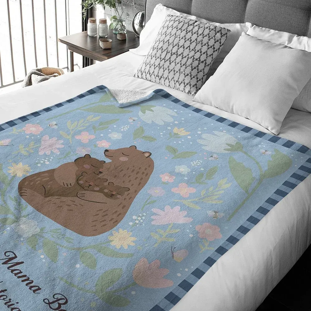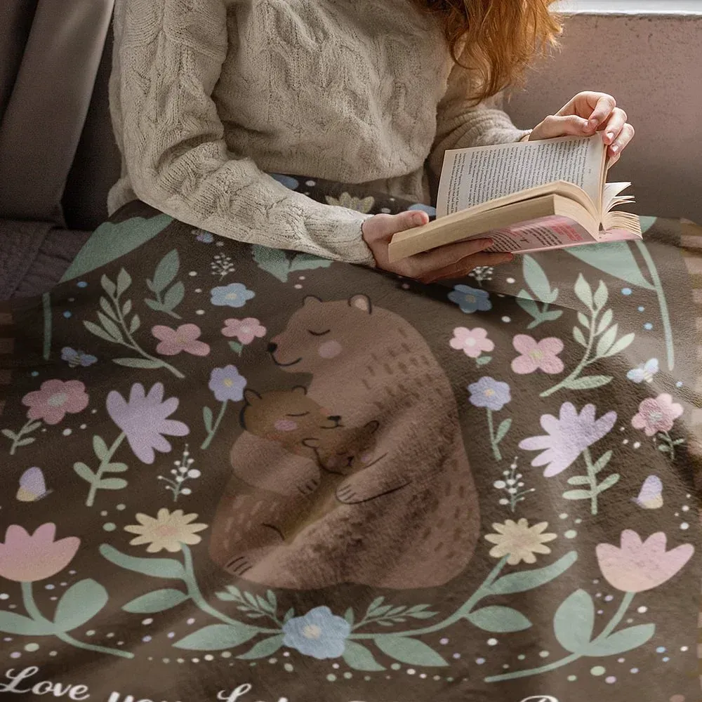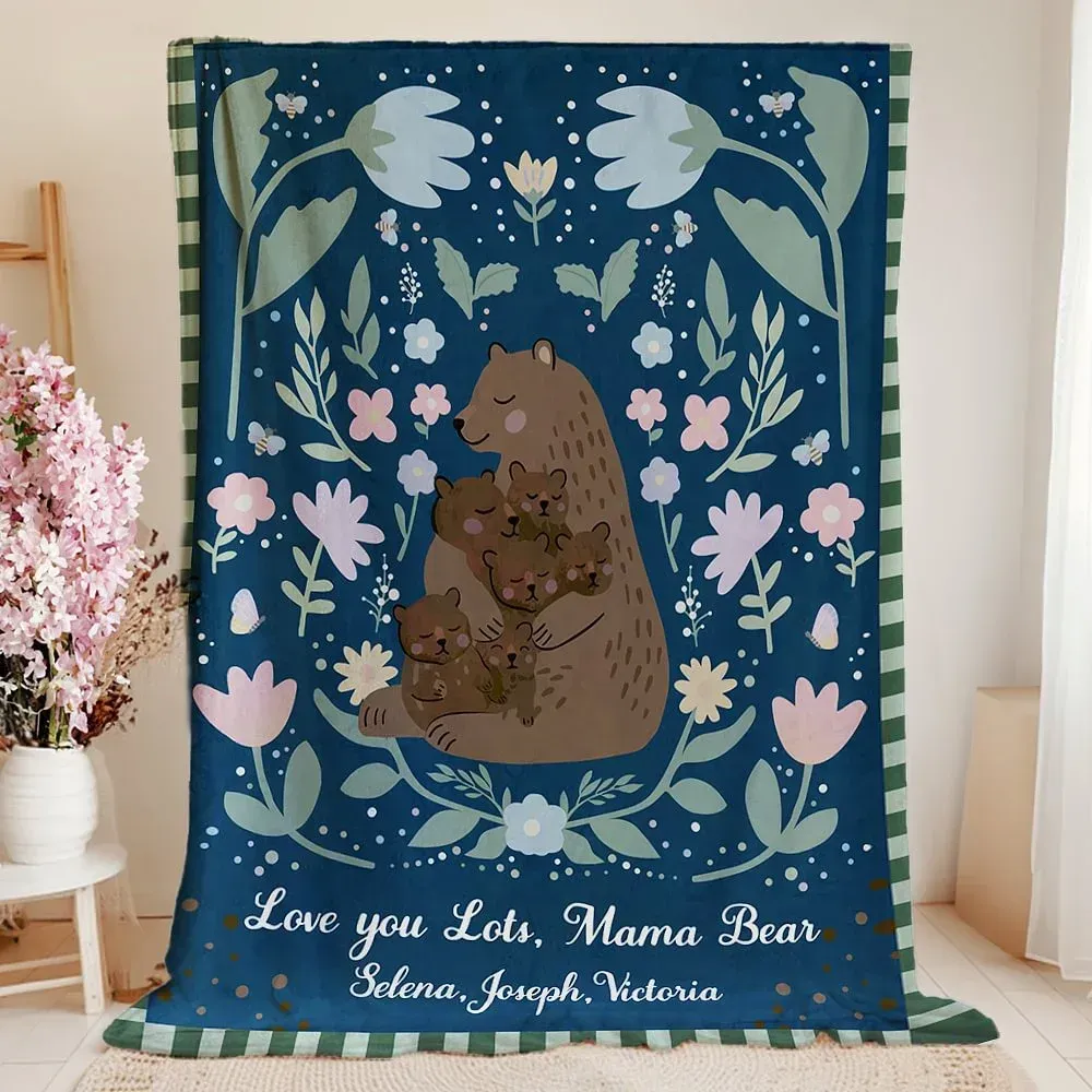 Personalisierte Kuscheldecke Ich liebe dich, Mama Bär mit Blumenmuster und 1–6 Namen und Text – ideales Geschenk zum Muttertag oder Geburtstag für Mama und Oma