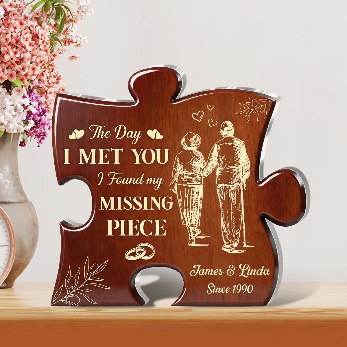 An dem Tag, als ich dich traf, fand ich mein fehlendes Stück-personal isierte, individuell geformte Acryl-Plakette