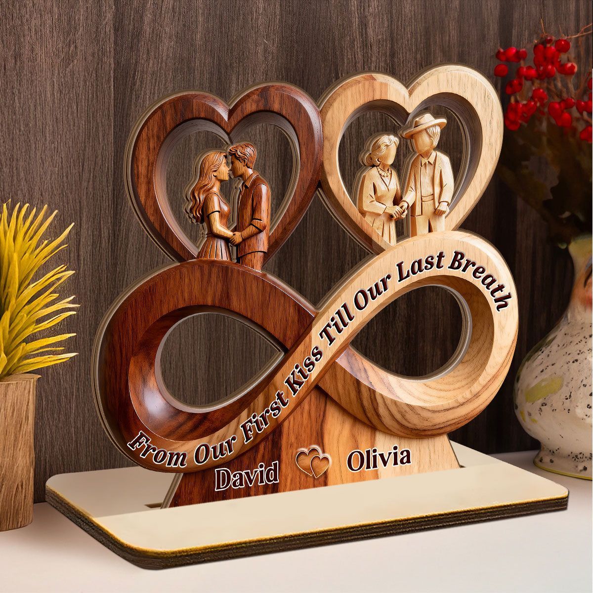 Zeitlose Liebe Unendlichkeit Personal isierte Holzplatte-Valentinstag Geschenk für Paare