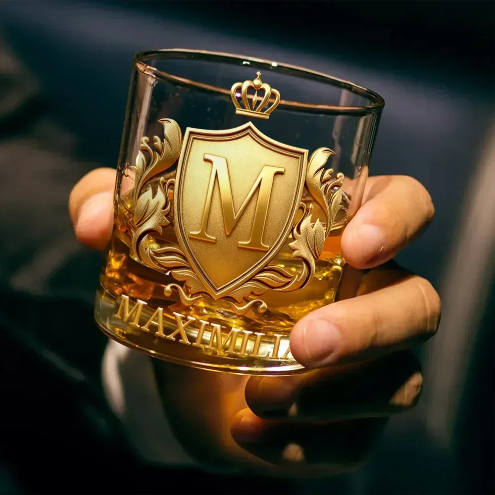 Badge-Whiskygläser können mit Initialen und Namen personalisiert werden.