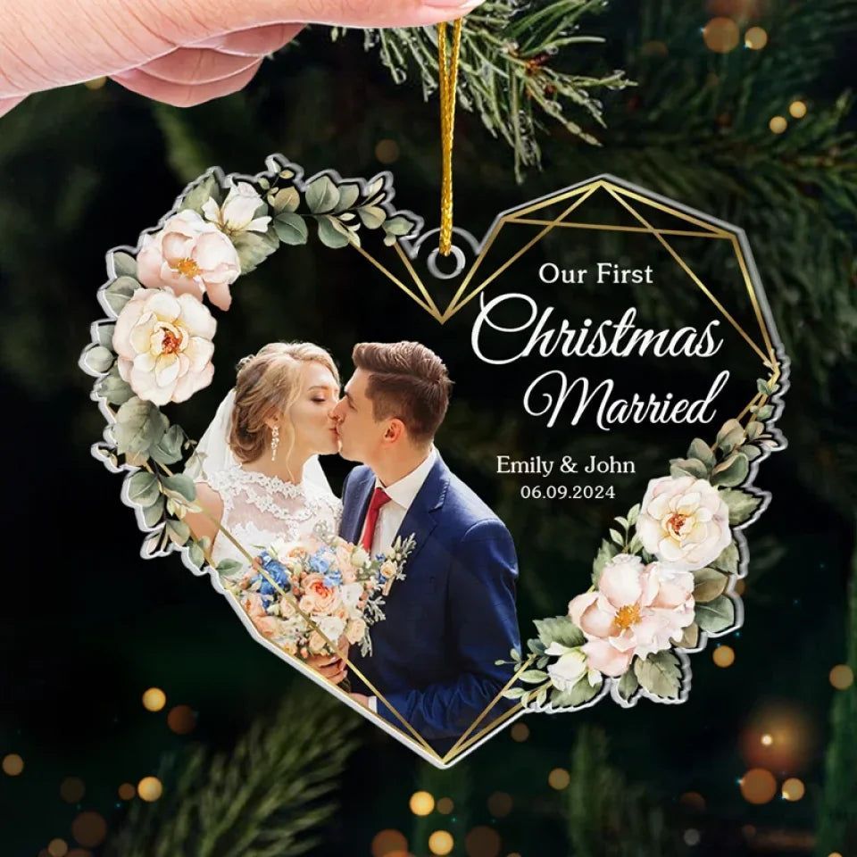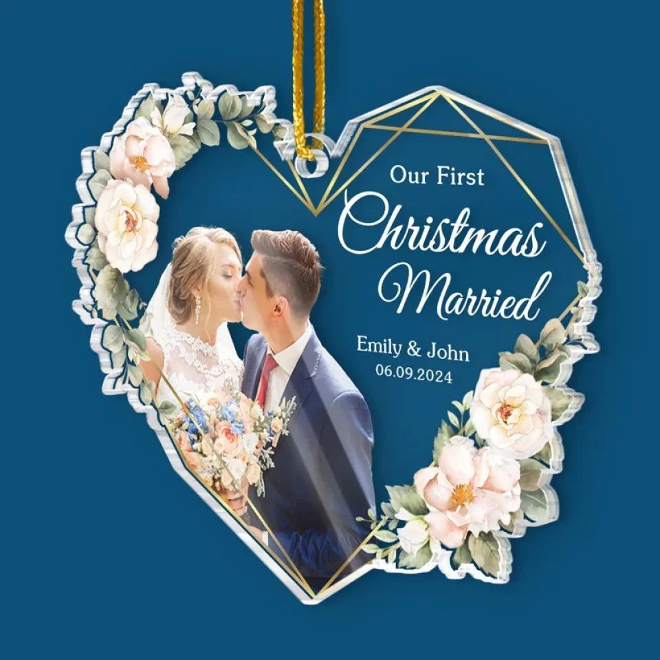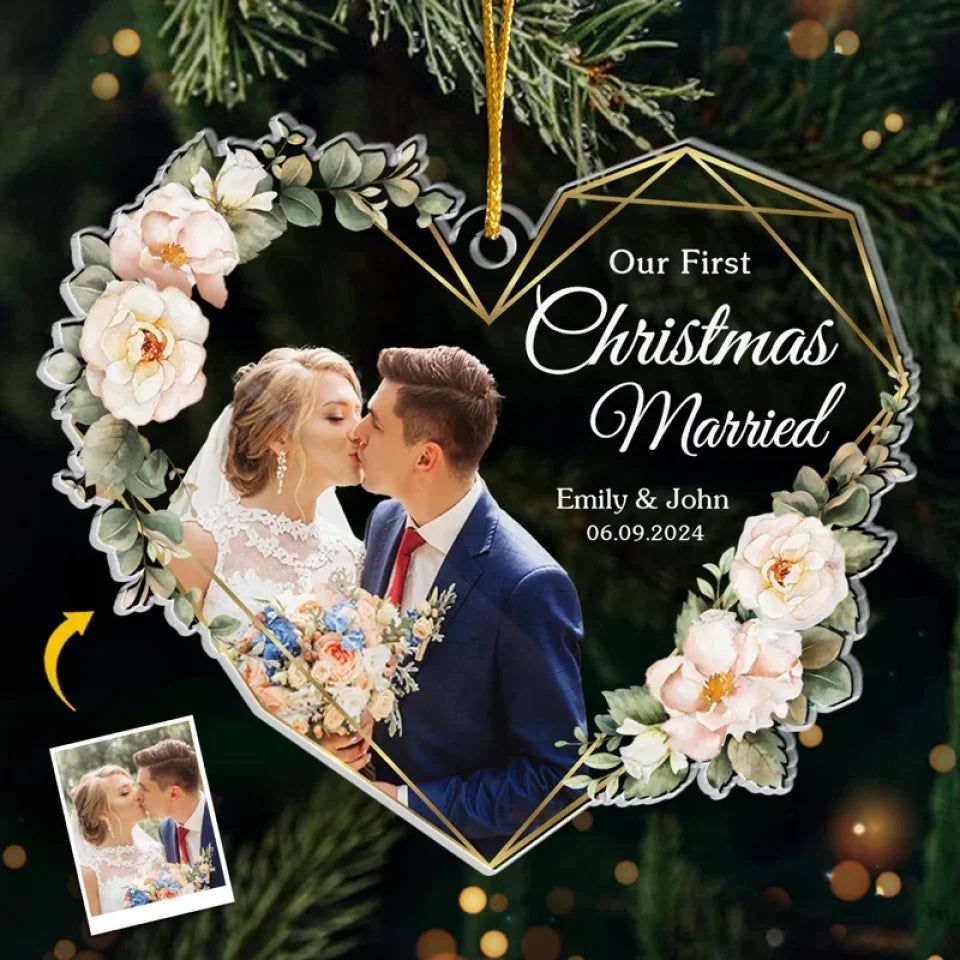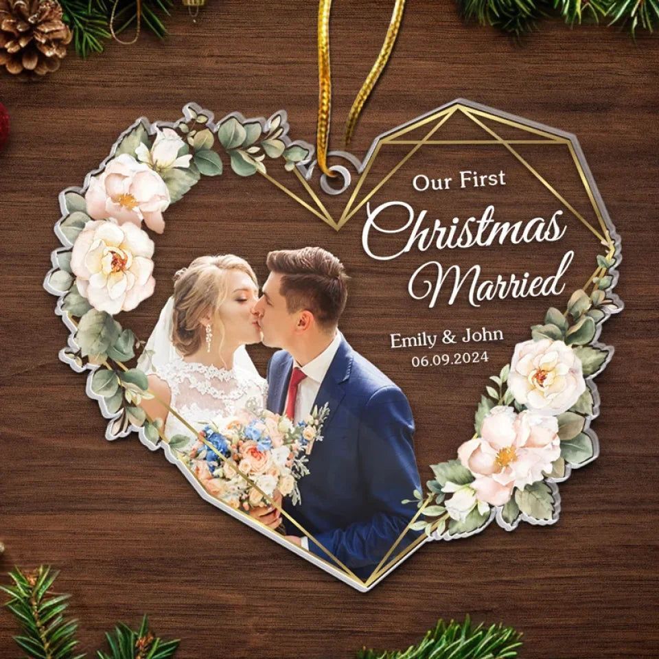 Personalisierte Foto-Weihnachtsdekoration Unsere Liebe macht dieses erste Weihnachtsfest unvergesslich – Individuell gestalteter Weihnachtsschmuck für Paare – Acryl, individuell geformt – Weihnachtsgeschenk für Ehemann Ehefrau, Jahrestag, erstes Weihnachtsfest