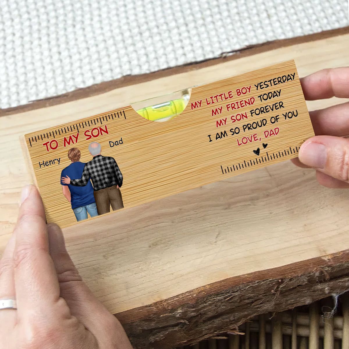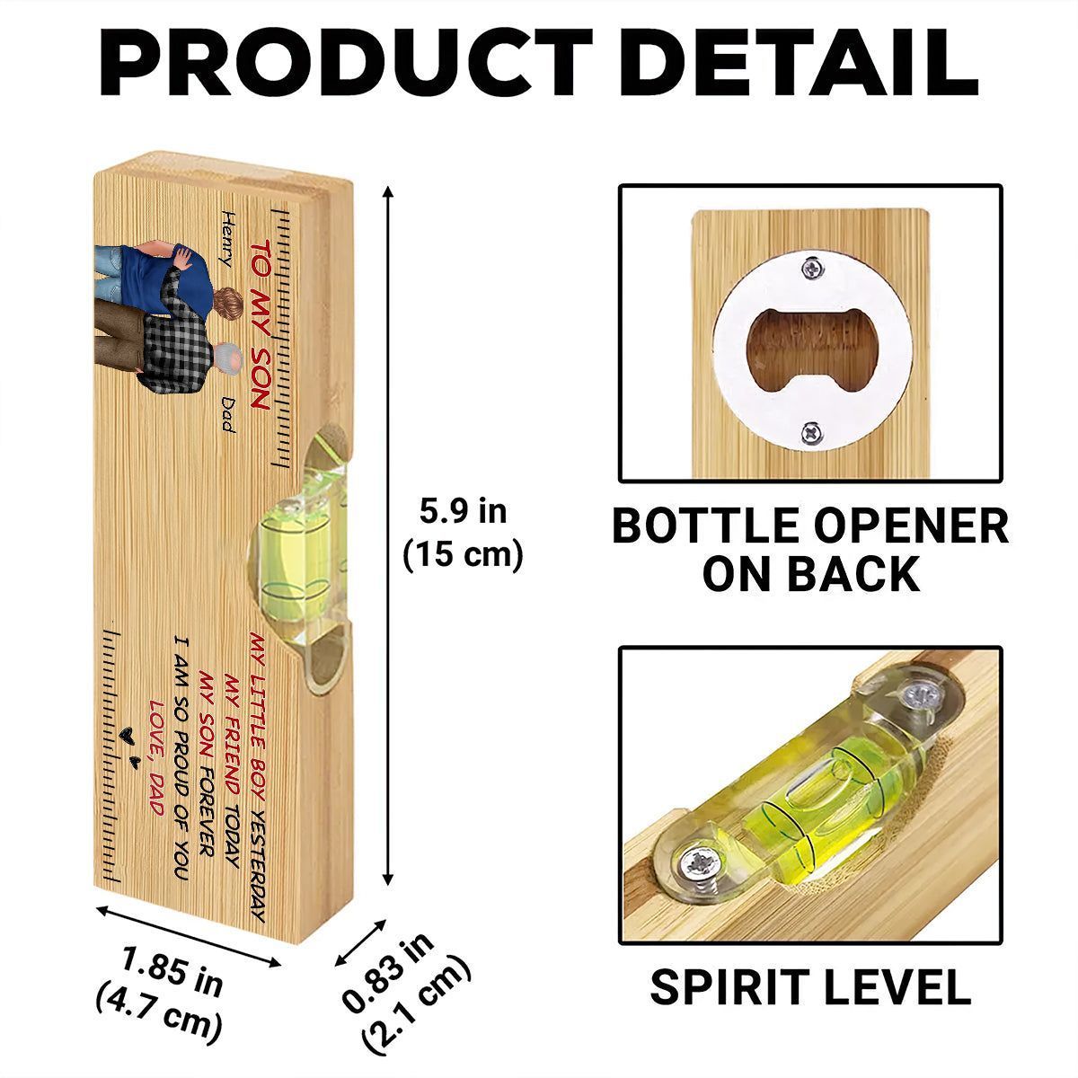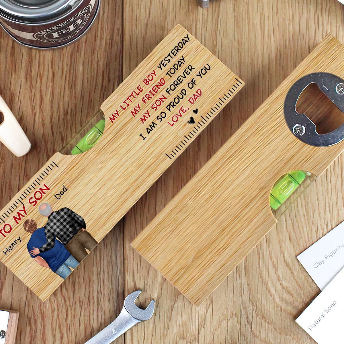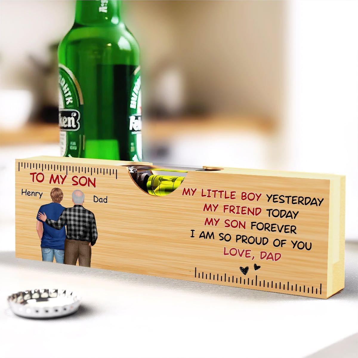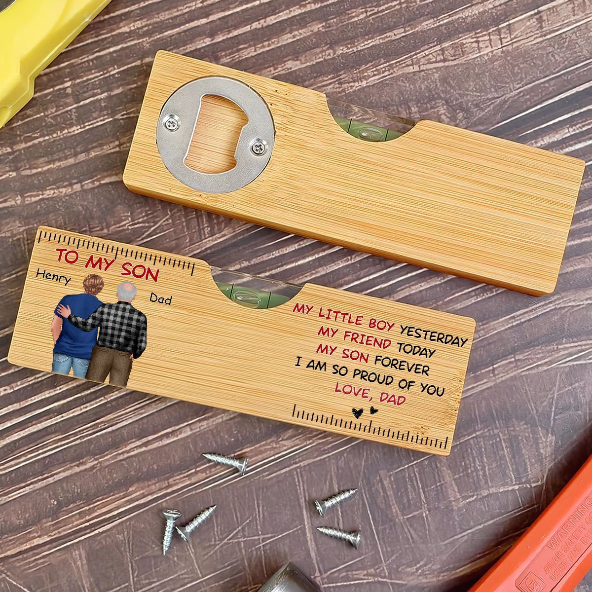 Mein Sohn für immer – Personalisierter Flaschenöffner mit Wasserwaage aus Holz