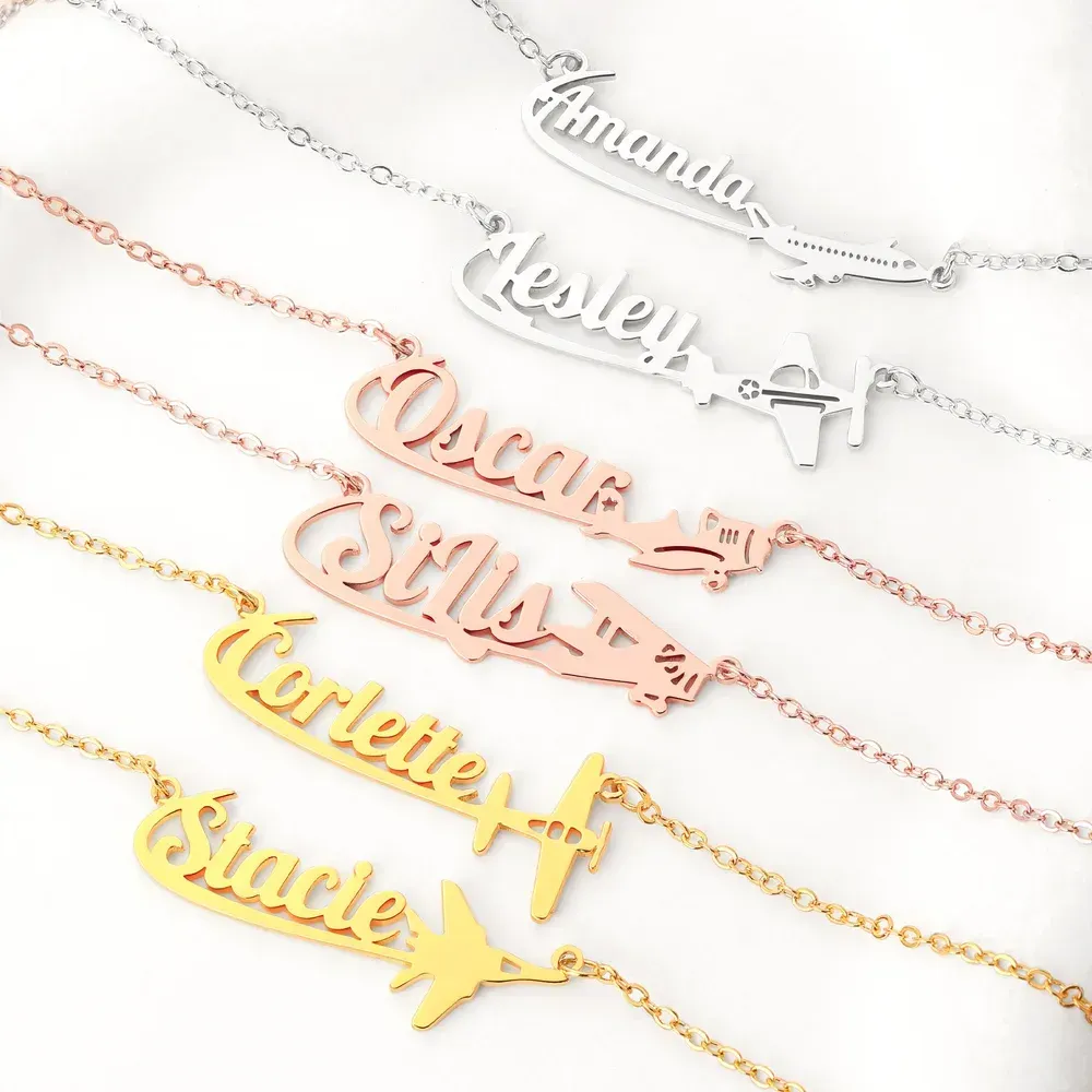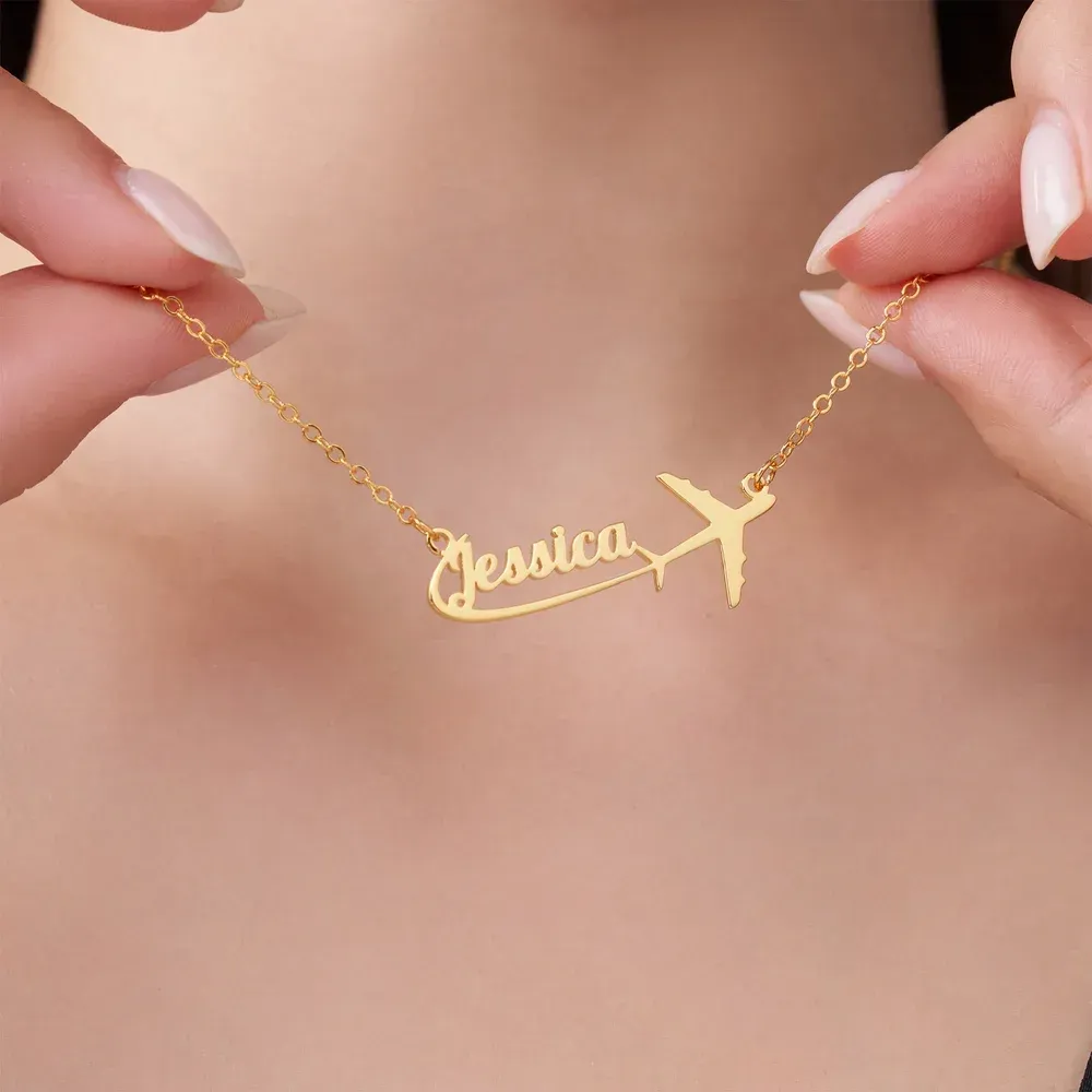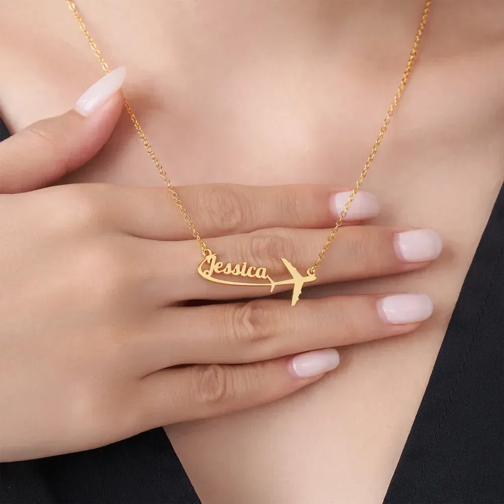 Personalisierte Namenskette aus Sterlingsilber mit Flugzeugmotiv – Zartes Schmuckstück, Geburtstags- oder Jahrestagsgeschenk für Reiseliebhaber, Pilotinnen und Flugbegleiterinnen