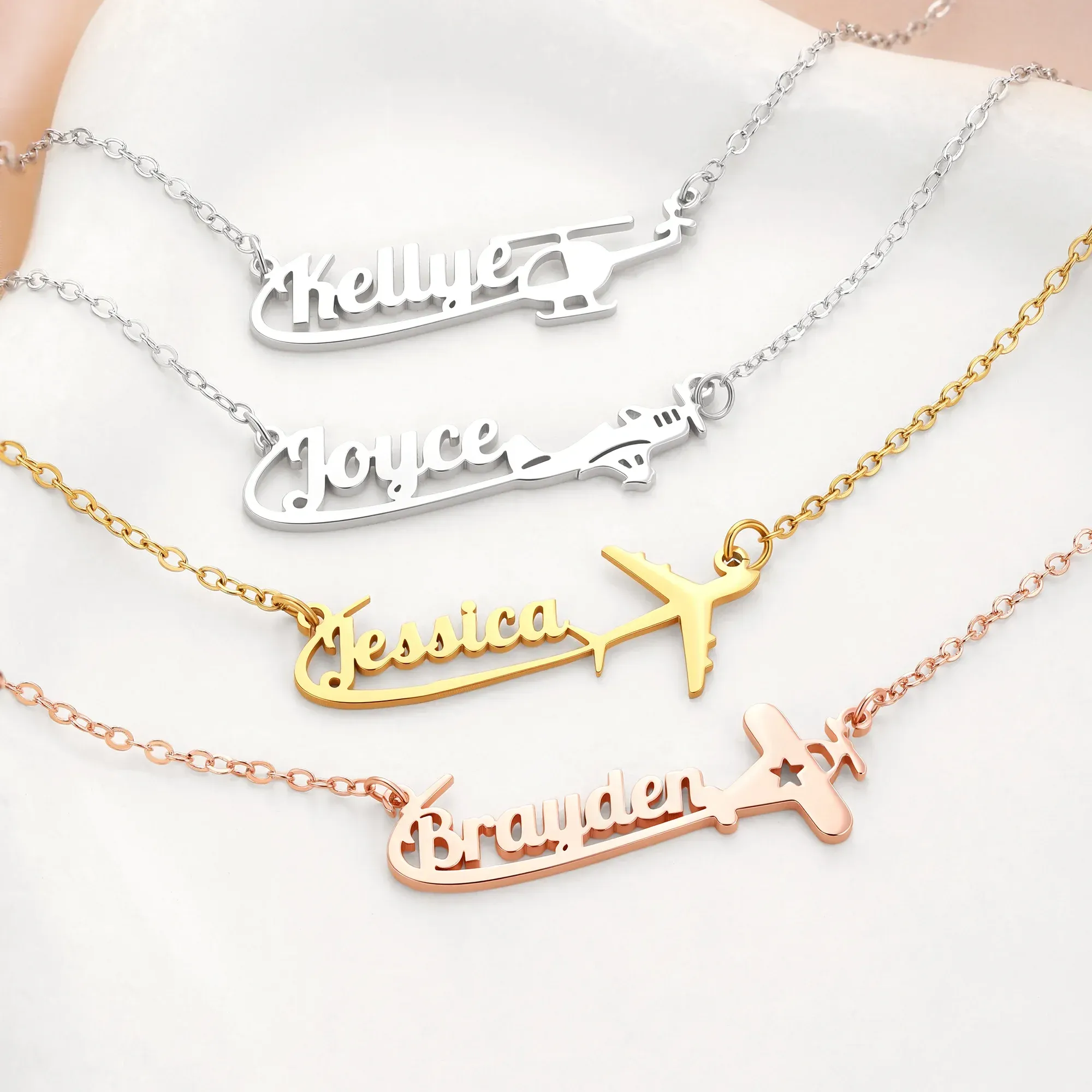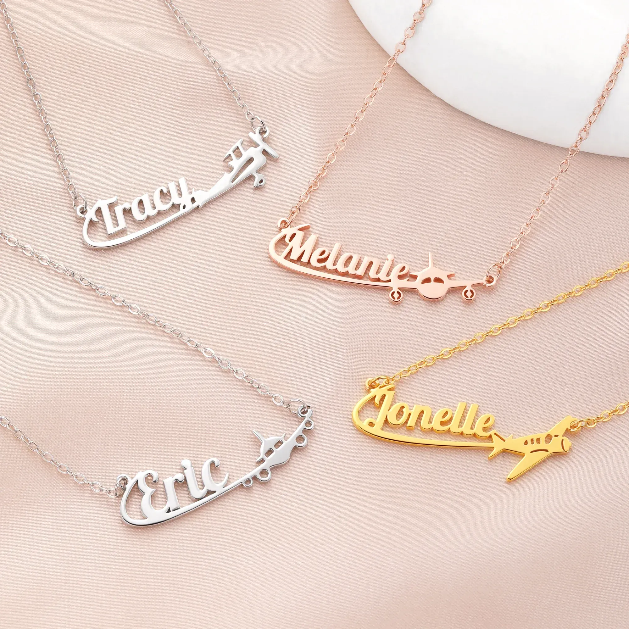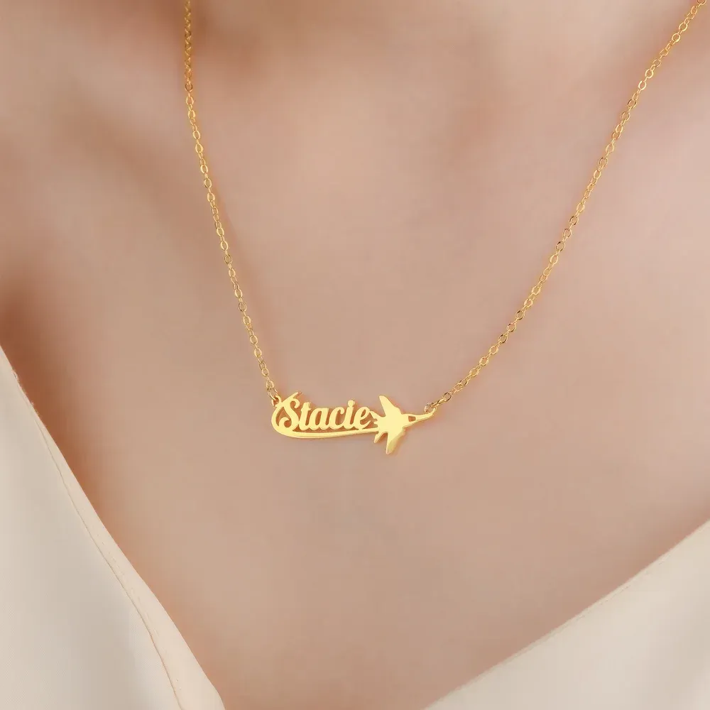 Personalisierte Namenskette aus Sterlingsilber mit Flugzeugmotiv – Zartes Schmuckstück, Geburtstags- oder Jahrestagsgeschenk für Reiseliebhaber, Pilotinnen und Flugbegleiterinnen